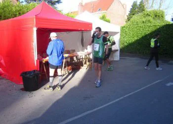 Un ami de Sylvain effectuera un tour avec nous mais, vers le km65, Sylvain prendra la poudre d’escampette et je serais incapable de le suivre. Sur chaque boucle, nous avons une petite côte à gravir : pas bien raide mais, la fatigue aidant, je gravirais les 3 dernières en marchant. Le km75 est franchi en 6h59 (là, j’ai déjà perdu 15’ sur mon tableau de marche rêvé. Quand je dis ca, je m’étais fixé comme objectifs : moins de 10h, objectif minimum ; moins de 9h30, objectif souhaité et donc, moins de 9h, objectif rêvé.