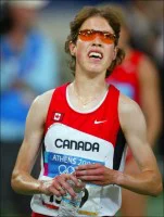 Junior surdouée, des premiers ennuis de santé avaient contrarié ses débuts seniors au point où on l’avait déjà cru perdue pour la compétition. Elle s’installe alors en Colombie-Britannique où elle peut s’entraîner dehors et à son rythme 12 mois par an. Elle retrouve sa santé, toute sa classe et rejoint bientôt l’élite mondiale à laquelle elle appartient, ce qu’elle démontrera de façon éclatante aux championnats du monde à Paris en 2003 en devenant la première canadienne à descendre sous les 15 minutes sur 5000 mètres et en participant à la finale de ce 5000 dans la foulée des intouchables africaines. On l’attendait beaucoup à Athènes. Grosse déception, surtout pour elle. Un chrono assez médiocre l’écarte de la finale. Elle annonce une année de repos, déménage à Mammoth Lake dans l’Est de la californie, nouvel environnement, nouveaux commanditaires, elle semble bien repartie, et puis cette tuile. Ostéoporose comme une vieille dame.