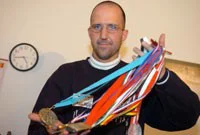 Car le « barjot » de la course à pied s’était déjà illustré précédemment lors de défis toujours plus fous. En 2004 par exemple, il courait trente marathons. Du 8 au 21 juillet 2005, il descendait le Rhône depuis sa source jusqu’à l’embouchure en 13 étapes et autant de jours, soit 814 kms.