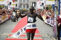 Parti seul au 25ème kilomètre après le travail des lièvres, Kemboi, qui est passé au 20ème km en 1h02’36", n’a pas fléchi pour conserver 5’06" d’avance sur son plus proche poursuivant au terme des 42,195 km du parcours anversois.