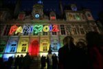"PARI S2012", le S de Paris collant au 2 pour former un coeur : sur la mairie, se détache l’emblème de la candidature, en lettres bleues, jaunes, rouges ou vertes -le noir, invisible la nuit, ne pouvant participer à la fête. Près d’une vingtaine de fenêtres aux mêmes couleurs, bariolent la façade.