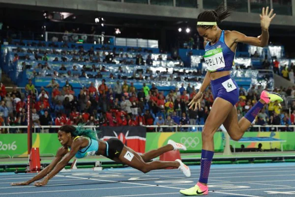 Sur le plongeon de son adversaire, Felix s’est bornée à dire que les "règles sont les règles", d’un air dépité. Rien n’impose en effet aux athlètes de passer la ligne d’arrivé sur les jambes, le chrono étant arrêté au passage de leur buste.