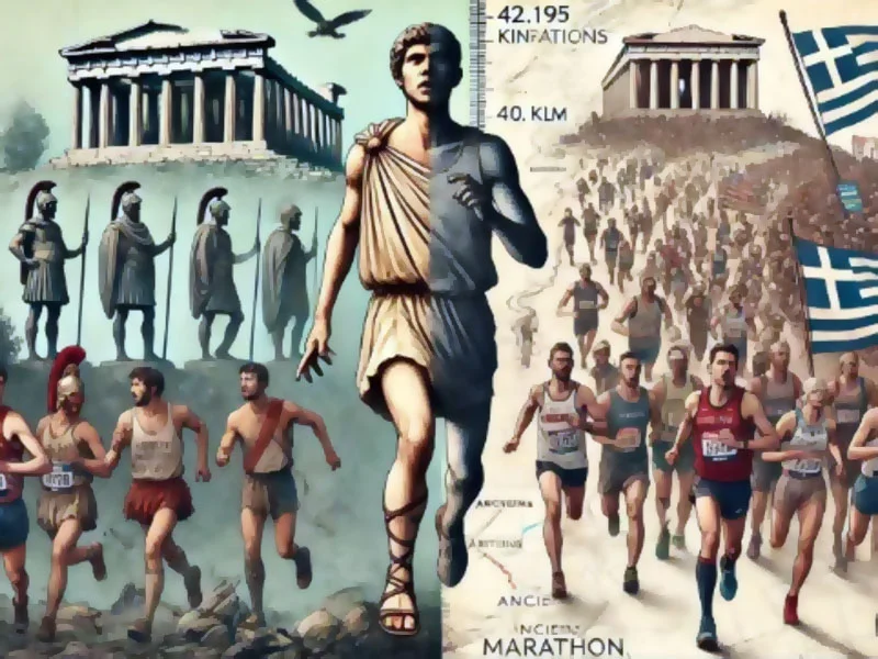 Selon la légende grecque, la course mythique a pris naissance 490 ans avant Jésus-Christ quand un messager, nommé Philippides, a été dépêché des côtes de la Ville de Marathon vers Athènes pour annoncer une victoire grecque face à la puissante armée perse. Le messager a parcouru une distance de 24,8 miles (39,91 kilomètres) pour faire part de sa bonne nouvelle. Le souffle coupé, à son arrivée devant les leaders d’Athènes, il aurait proclamé les mots suivants : « Réjouissez-vous. Nous avons gagné la guerre ». Il se serait ensuite effondré pour ne jamais se relever. Le marathon est né de cette légende, mais contrairement à la croyance populaire, les Grecs n’ont jamais couru cette distance lors de leurs olympiades. Au mieux, leurs athlètes ont pris part à des compétitions s’échelonnant sur cinq kilomètres.