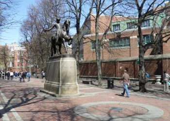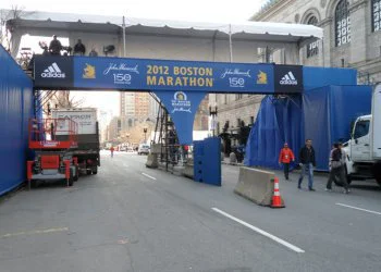 Dimanche matin, non, ce ne sont pas les préparatifs pour la course. Boston, comme Dublin, offre la particularité d’avoir son épreuve se déroulant le lundi. Néanmoins, je pars effectuer ma sacro sainte mise en jambes de veille de course. Nous décidons ensuite, avec mon collègue de chambrée, d’aller parcourir le freedom trail, une bande rouge dessinée sur le sol d’environ 4-5 km nous faisant découvrir une vingtaine des principaux sites de la ville dont le Boston Common, plus vieux parc public d’Amérique ou l’USS Constitution, navire de guerre du XIXème siècle. L’après-midi sera consacrée au repos. Les nouvelles à la télévision ne sont pas rejouissantes pour le lendemain : très forte chaleur annoncée. L’organisation a augmenté le délai d’arrivée d’1h et propose même aux coureurs qui le souhaitent, le report de leur participation sur l’année 2013.