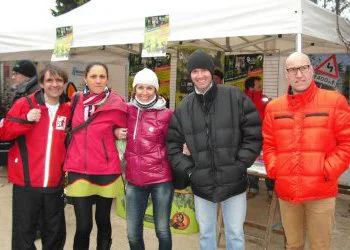 Dimanche matin, il est temps de passer aux choses sérieuses. Les jambes me démangent : il faut dire que je suis au repos depuis 3 jours et que je n’ai pas couru de marathon depuis 1 an (Boston 2012). Je fais la route avec Francine et Joseph puis très vite sur place, je retrouve Isabelle, Pascal, Marie et Grouik. J’ai opté pour une allure autour des 12 km/h. Il fait encore frisquet ce matin. Heureusement, je pourrais rester couvert jusqu’au dernier moment et laisser mes affaires à Joseph : merci Joseph.