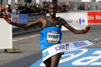 Kipruto, vice-champion du monde 2011 âgé de 26 ans, a battu au sprint le vétéran Kiptoo (37 ans) avec lequel il avait lâché le groupe de tête sur une accélération au 35ème km.