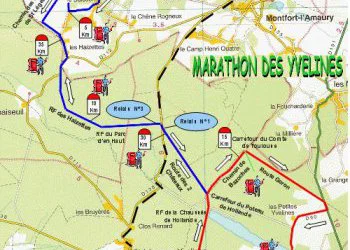 Le marathon, sur route et piste cyclable, commence par 8 km dans la campagne pour arriver dans le cadre magnifique de la forêt de Rambouillet (les étangs de Hollande, etc...). Puis les coureurs effectuent une grande boucle en forêt du 12 ème au 32 ème (route, pistes et allées bitumées). Ils font alors en sens inverse les 8 km du début pour terminer sur la piste du stade de la Queue lez Yvelines. On peut également courir en relais par équipes de 3.