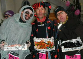 Le château de Sermenzy, un peu après le semi, nous fera découvrir des ravitaillements d’un genre nouveau. En effet, en lieu et place de la charcuterie ou des bretzels jusqu’alors proposés, nous aurons droit à … des bonbons Haribo. Ça commence certainement à devenir dur pour mon comparse mais il ne dit mot. Au passage à Arnas, lieu de départ du semi-marathon et du 12 km, l’accueil de son fan-club l’a très certainement ragaillardi. Mis à part un petit problème de serrage de lacets pour Thierry, tout se passera bien jusqu’à la fin. Et ce ne sont pas les araignées prénommées Francine et Marc, revenues sur nous vers le km 39, qui réussiront à nous perturber. Nous passons la ligne en 4h45’, bien en deçà de l’objectif.