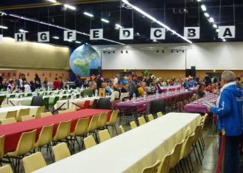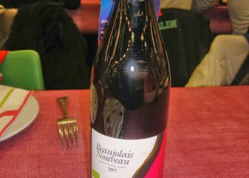 Remise de la bouteille de Beaujolais, accompagnée du taste-vin millésimé. Il fait toujours aussi froid. Nous nous réfugions dans le sous-sol du marché couvert à Villefranche pour ... un petit verre de Beaujolais réparateur. Nous ne traînons pas trop, nous reprenons la navette et retournons à l’hôtel prendre une bonne douche fort appréciée. En soirée, c’est la Nuit du Marathon, fête où 1500 personnes se retrouvent pour partager un banquet géant, dans une organisation parfaite. Un peu comme dans les aventures d’Astérix sauf qu’ici, le barde est remplacé avantageusement par une animation musicale de folie qui met, à nouveau, une sacrée ambiance. En cours de soirée, la Confrérie du Beaujolais intronisera, dans sa promotion 2013, une douzaine de coureurs, dont la nouvelle centenaire, Dany. Les néo-marathoniens, dont Thierry et Christophe seront également à l’honneur. Un peu passés inaperçus certes, je pense qu’ils en garderont un bon souvenir quand même.