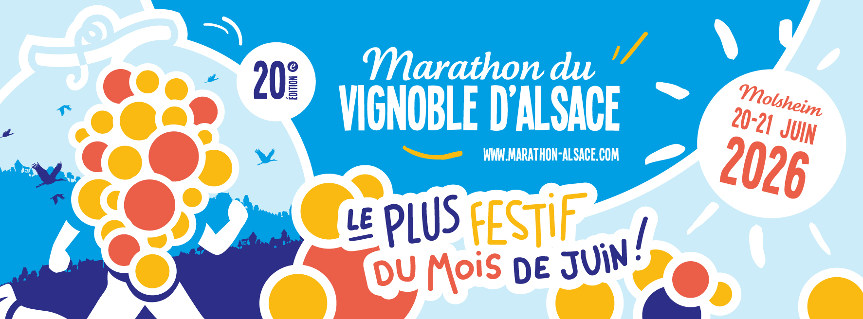Et c’est parti pour la 20ème édition du Marathon le plus festif du mois de Juin ! Le rendez-vous est donné les 20 et 21 Juin 2026 à Molsheim. Cette année encore, l’ambiance promet d’être endiablée : la course du Marathon du Vignoble d’Alsace, une course à ne manquer sous aucun prétexte.