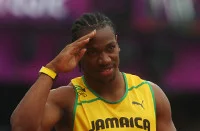 "La Bête", médaillé d’argent sur 100 et 200 m aux jeux Olympiques de Londres derrière Bolt, s’était blessé à la cuisse droite le 13 avril à Kingston lors de son premier 100 m de la saison. Il avait renoncé à la mi-juin à participer aux sélections jamaïcaines pour les Mondiaux, mais pouvait toutefois s’aligner sur 100 m à Moscou, s’il avait été rétabli, car il dispose d’une qualification d’office en tant que champion du monde en titre.